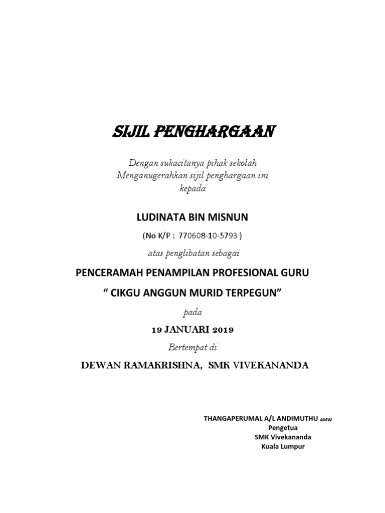 Sekolah kebangsaan chinchin telah dianugerahkan sijil penghargaan dari jabatan. Contoh Sijil Pertandingan Johan Pertandingan Masjid Pejabat Kadi Daerah Kulai Facebook contoh buat sijil penghargaan kelab kokurikulum sekolah tatacara membuat sijil di peringkat sekolah untuk program aktiviti kokurikulum. Template Sijil Penghargaan Word.