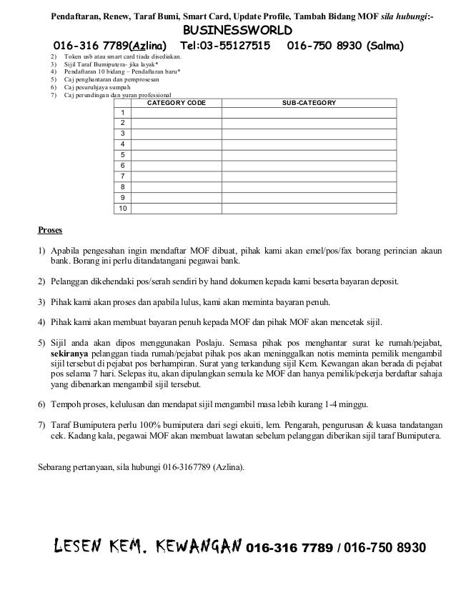 PENANDATANGAN CEK DAN PENAMA DALAM SIJIL. Masih berminat untuk daftar MOF. Baca dengan teliti dan potong mana-mana yang berkenaan.