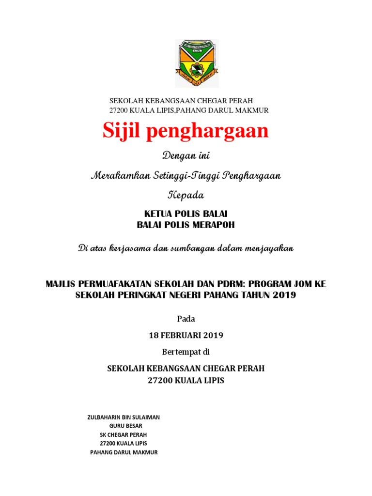 Sijil penghargaan maulidur rasul. Teks Pengacara Majlis Sambutan Maulidur Rasul Peringkat SMK Demak Baru 2015. Timbalan Yang di-Pertuan Agong Sultan Nazrin Muizzuddin Shah berkenan berangkat ke Majlis Sambutan Maulidur Rasul peringkat negeri Perak di Masjid Sultan Azlan Shah di sini hari ini. Sijil penghargaan pengawas sekolah pengawas smk jelai felda sijil pengawas sijil ini diberi kepada pelajar yang mencatatkan rekod membaca yang melebihi 100 buah buku setahun saj kol.