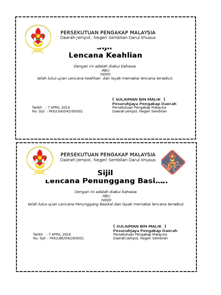 Contoh number keahlihan sijil malaysia. Sejarah Pengakap Malaysia Sejarah pengasas Pengakap Lord Baden Powell 7. Certificate of attendance only for Graduate Engineer registered after 112005. Diploma Lanjutan Kemahiran Malaysia DLKM Tahap 5.