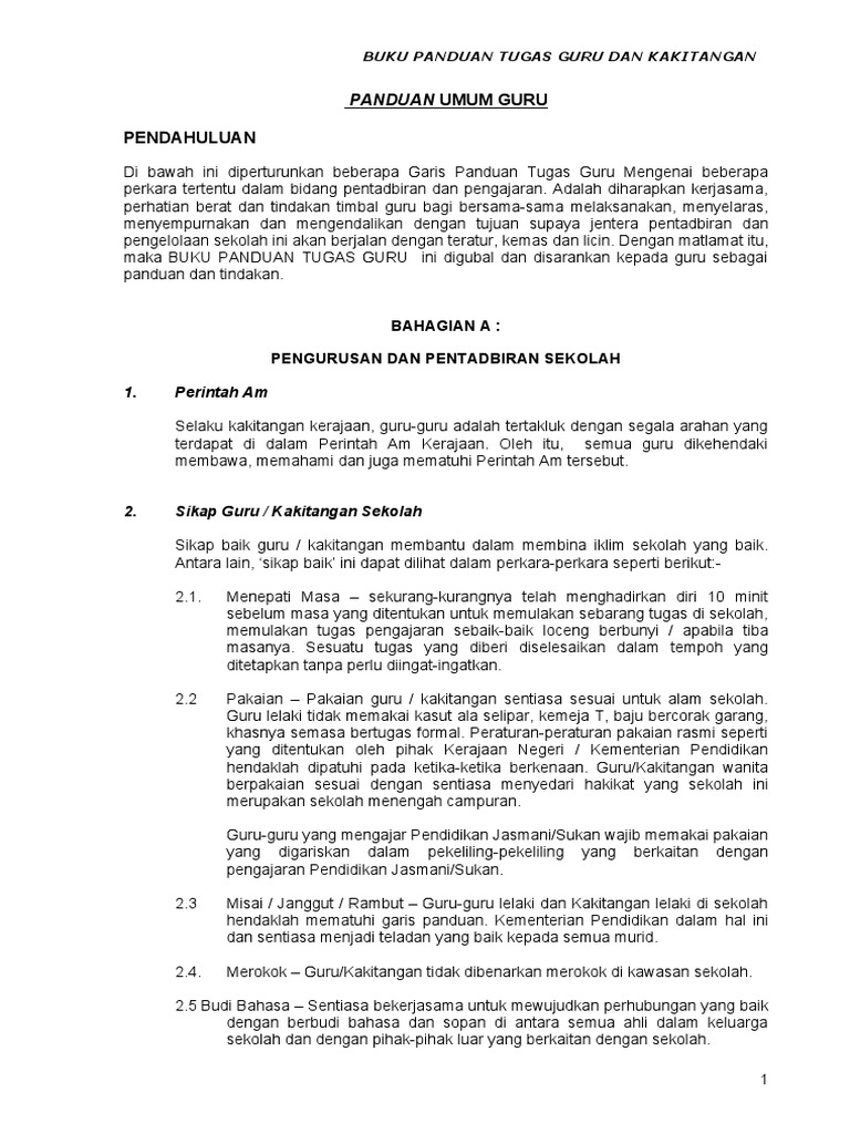 Buku Panduan Tugas Guru Dan Kakitangan Sekolah Pdf